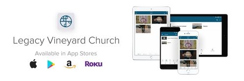 Download our Legacy Vineyard Church app to get our latest talk in real time, see all the upcoming events, connect with people from the church and more. A great feature is it also has the entire Bible in seven different versions. There is a built in Bible plan along with an audio option.